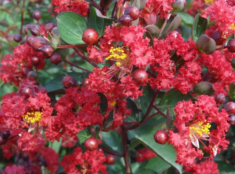 紅花紫薇的花朵色彩非常艷麗,花朵形態也很優美,花期有很強的觀賞價值,要是在花期保證充足的水分,還可以讓紅花紫薇的花朵變得更絢麗奪目。
