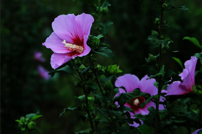 木槿花這種植物品種比較多,花的顏色也比較豐富,它開出的花比較柔和,通常有白色的,紅色的,黃色的,還有淡紫色的。這是園林中比較常見的一種植物,用途還是比較廣泛的。