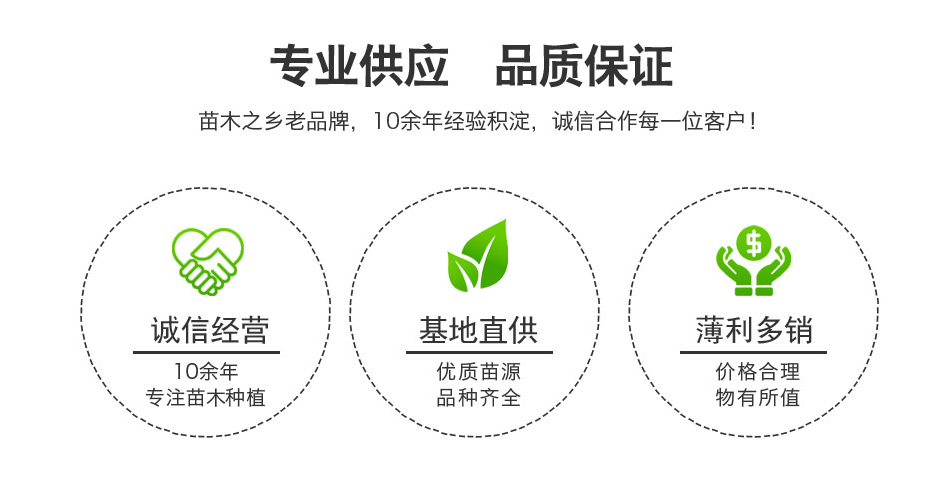 垂絲海棠 時間:2025-03-01 文章挑錯 點擊量: 【導讀】求購垂絲海棠苗木,垂絲海棠種子,找長景園林,常年批發供應垂絲海棠價格優惠,規格有5公分,6公分,7公分,8公分,10公分,12公分樹形優美生長旺盛,沭陽垂絲海棠基地大量銷售中,具體哪里有垂絲海棠多少錢一棵,請聯系我們。本文主要內容有:垂絲海棠圖片,沭陽垂絲海棠價格表,垂絲海棠特栽植成活率時間等要素介紹。好伙伴,大未來,歡迎您訪問長景園林。苗木名稱地徑(cm)價格垂絲海棠 425~60垂絲海棠555-120垂絲海棠 6120~160垂絲海棠7260~320垂絲海棠8380-500垂絲海棠9450~750垂絲海棠10550-900垂絲海棠11700~1000垂絲海棠121100~1400根據實際要求,價格請電話咨詢為準!【基本信息】 名稱:垂絲海棠 科屬:薔薇科,蘋果屬。 種類:花灌木/春季觀花苗木 土球:春秋冬季1:7,夏季1:8 分枝點:80~100公分 生長溫度:18~31度 育苗方法:嫁接 栽植季節:四季 產地分布:江蘇,安徽,浙江,河南,山東,河北等地。【主要特性】 垂絲海棠是園林中常用的落葉小喬木,觀花苗木,其花朵漂亮,色彩鮮艷,植株高度2~8米,樹形優美。花期4月上旬,花朵簇生于頂端,花瓣呈玫瑰紅色,朵朵彎曲下垂。垂絲海棠價格低廉,綠化效果好,宜栽植于小徑兩旁、孤植、叢植于草坪上,植于水塘邊,小河旁,在園林綠化中有廣泛的應用,柔蔓迎風,垂英鳧鳧,如秀發遮面的淑女,脈脈深情,風姿憐人。宋代楊萬里詩中:“垂絲別得一風光,誰道全輸蜀海棠。風攪玉皇紅世界,日烘青帝紫衣裳。懶無氣力仍春醉,睡起精神欲曉妝。舉似老夫新句子,看渠桃李敢承當?!毙稳菅G的垂絲海棠鮮紅的花瓣把藍天、天界都攪紅了,閃爍把藍天、天界都攪紅了,閃爍著紫色的花萼如紫袍,柔軟下垂的紅色花朵如喝了酒的少婦,玉肌泛紅,嬌弱乏力。卵形葉片,5~8朵海棠花長在一起,鮮紅色,樹高達8米,樹桿直立,其樹冠碩大茂密,樹皮灰褐色,很光滑。【育苗經驗分享】 垂絲海棠生長環境要求陽光充足,溫暖濕潤,水土肥沃。不耐陰,每日光照小于4小時就會生長不良,屬于陽性樹種。繁殖方法有扦插,分株,壓條,播種,嫁接等,苗圃育苗主要是嫁接繁殖,每年2月是嫁接的好時間,砧木可選擇公海棠,木梨等蘋果屬植物,枝接好,當年小苗生長2米高。 大苗的株行距一般為1.2*2米,1.8*3米,前者最大培育6公分的苗木,后者8~10公分,剛栽的頭兩年,每年春季都要修剪樹形,扶正樹干,讓植株雛形直立向上。施肥的技巧,生長期用速效肥撒施,休眠期用農肥撒施,夏季高溫不可施肥。【相關苗木】 江蘇沭陽全國最大的綠化苗木生產基地,是您選購綠化苗木的優質貨源地?,F在在主要供應綠化苗木品種有:紅葉石楠容器苗、龜甲冬青球、小葉女貞球、桂花、櫻花樹、流蘇、叢生木槿、垂絲海棠花期、西府海棠、木瓜海棠、5公分垂絲海棠價格、垂絲海棠報價、垂絲海棠基地、貼梗海棠、櫻花等數百種苗木??稍陂T庭兩側對植,或在亭臺周圍、叢林邊緣、水濱布置;若在觀花樹叢中作主體樹種,其下配植春花灌木,其后以常綠樹為背景,則尤綽約多姿,嫵媚動人。若在草坪邊緣、水邊湖畔成片群植,或在公園游步道旁兩側列植或叢植,亦具特色。 相關產品 丁香樹 天目瓊花 紅葉羽毛楓 日本紅楓