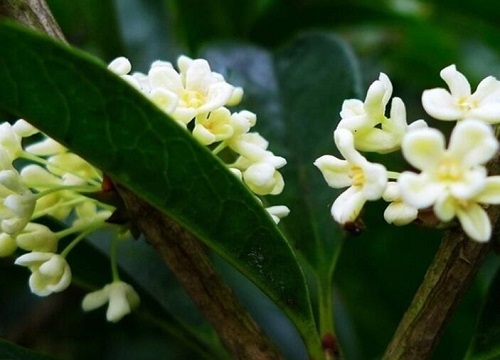 桂花高3-5米,最.高可達(dá)18米,樹皮灰褐色,小枝黃褐色,無毛,葉片革質(zhì),橢圓形,開花時(shí)花色多樣。