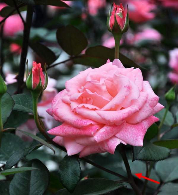 玫瑰的花枝上面都是長滿的刺,而月季花它的枝干上不帶刺,這個(gè)是它們間最大的區(qū)別;