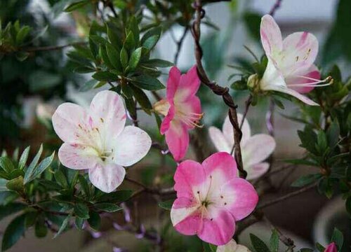 杜鵑花是一種常綠或落葉灌木,分枝多而纖細,花期在4-5月,每簇有2-6朵花,有著紅、杏紅、雪青、白等多種花色,十分繁茂艷麗,多生長在山地疏灌叢中。