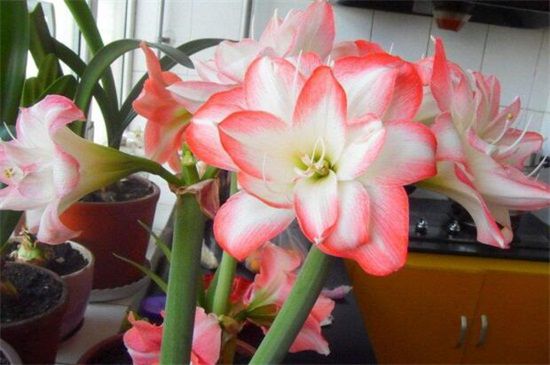 白肋朱頂紅的花朵是白色的,但頂端有著一塊粉紅色,猶如一個美少女,很多女孩子都特別的喜歡白肋朱頂紅,平時即使不開花,也非常美麗,適合將其盆栽養殖。